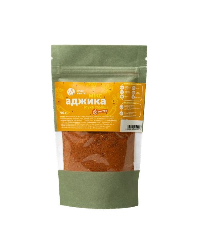 Аджика — це традиційна абхазька гостра приправа з суміші спецій. Має насичений аромат та пікантний солодко-гострий смак.