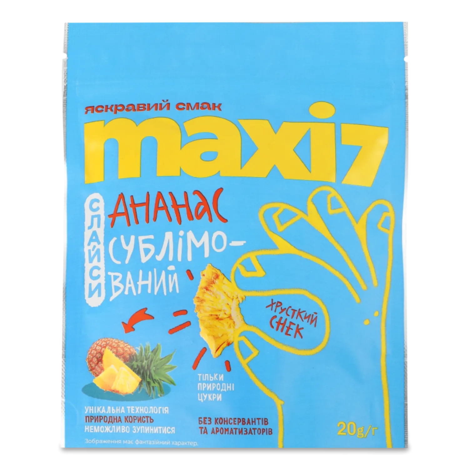 Склад: 100% слайси ананаса, висушені методом вакуум-сублімаційної сушки