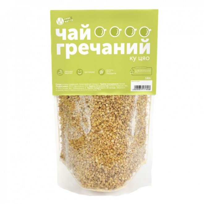 Чай Гречаний – це напій, приготований з молодих насіння гречки татарської. Він характеризується вишуканим ароматом і ніжним смаком вівсяного печива, а також природним жовтуватим відтінком. Не містить кофеїну.