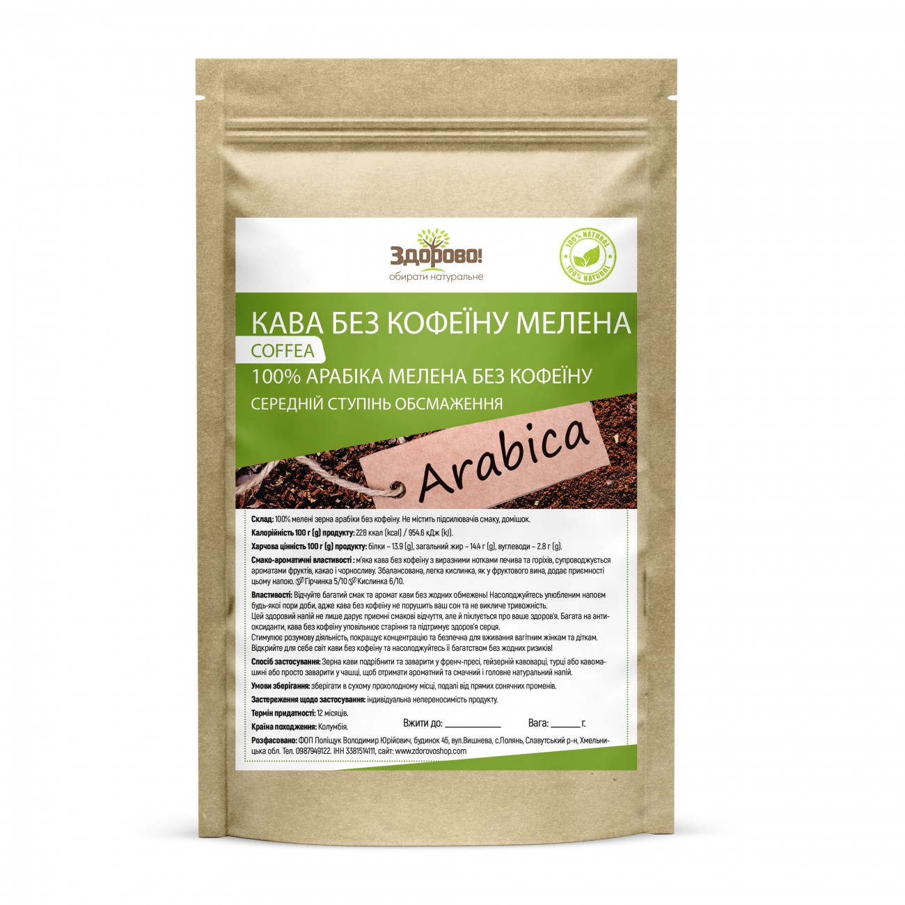 Склад: 100% мелені зерна арабіки без кофеїну