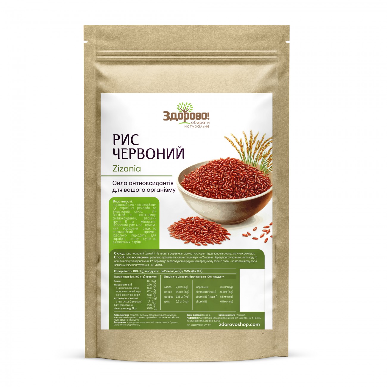 Склад: 100% рис червоний дикий (нешліфований)